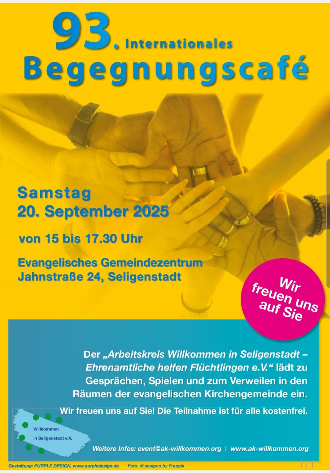 Willkommen in Seligenstadt e.V. lädt euch zum 93. Begegnungscafé ein und das wollen wir gemeinsam mit euch feiern!